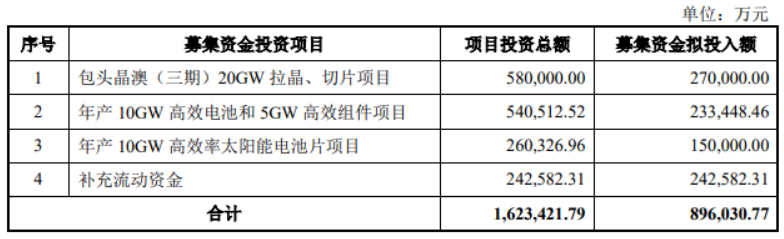 7月14日,晶澳科技发布公告称,向不特定对象发行可转换公司债券募集资金总额不超过896,030.77万元 (含896,030.77万元),扣除发行费用后拟用于投资如下项目: