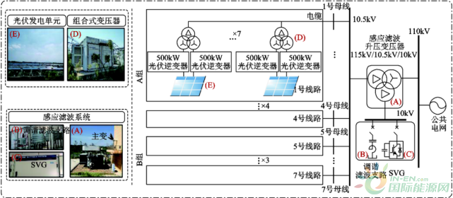 研究人员围绕一个真实光伏电站,考虑上级电网阻抗的变化,建立了传统光伏电站的谐波域等效模型,对其谐振问题进行了分析,揭示网络阻抗变化对于谐波放大系数的影响机制。在此基础上,针对在光伏电站真实出现的谐波谐振,提出采用感应滤波升压变压器进行联网的光伏电站谐波谐振抑制方法,详细分析了其谐波域模型和谐振抑制机理。