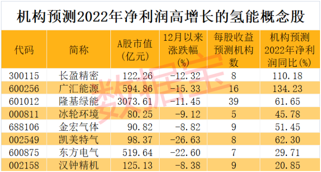 哪些概念股业绩值得期待?根据5家以上机构一致预测,2022年净利润增速有望超20%的有8股。广汇能源、长盈精密获机构预测净利润翻倍增长。最新收盘价与年内高点相比,长盈精密、广汇能源、隆基绿能回撤幅度均达到40%以上。