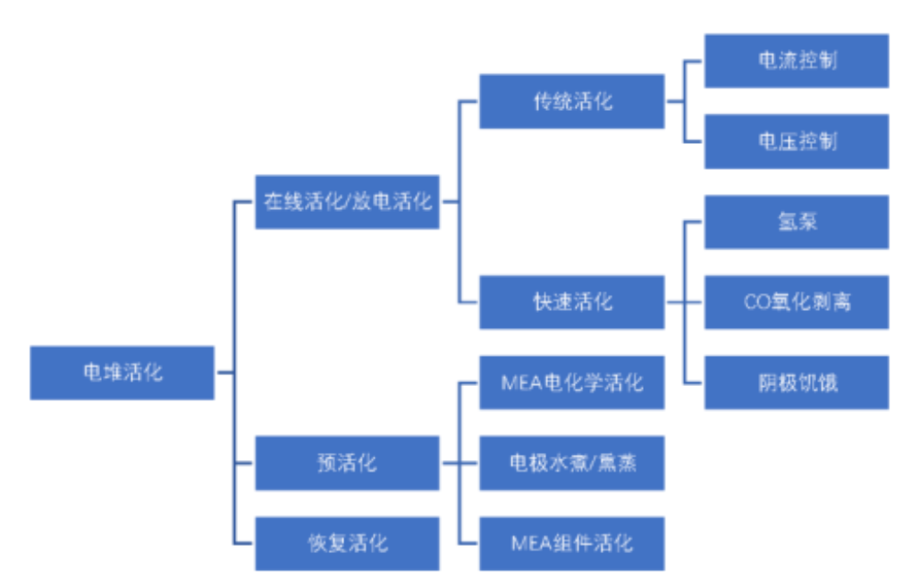 预活化的活化效果一般,PEMFC未放电,可以减少PEM燃料电池从完成组装到实际投入使用的时间,主要是通过注水、浸泡提前使质子膜湿润,或是通过氢气吹扫去除催化剂表面的氧化物和杂质,减少PEMFC从完成组装到投入使用的时间。