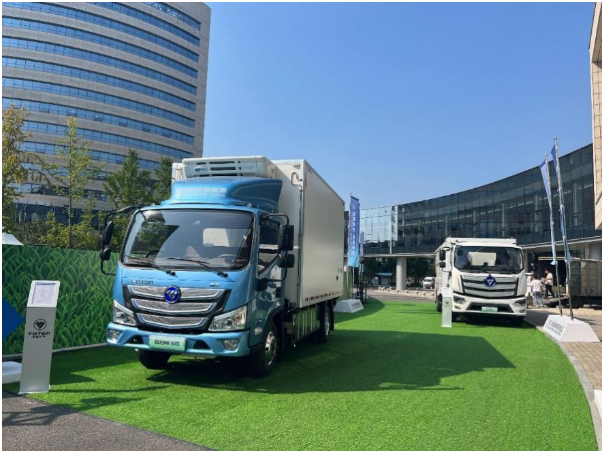 北汽集团旗下北汽福田携最新研发的氢燃料电池冷藏车、氢燃料电池环卫专用车产品亮相会场。