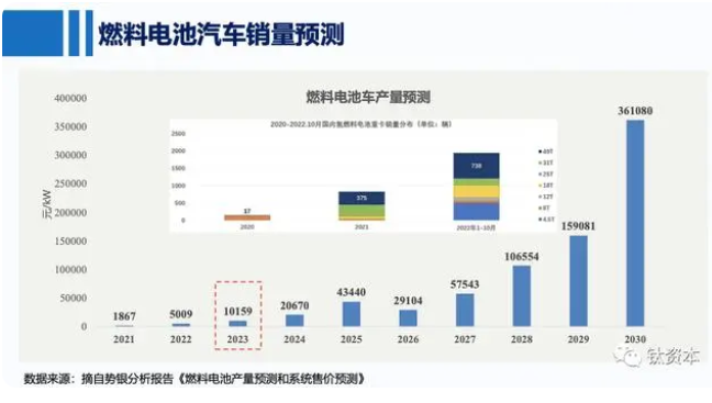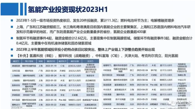 2023年上半年,氢能源领域仍然有数百亿元的融资。尽管目前市场上存在许多不成熟的技术,但核心材料仍然值得关注,因为制氢将会是一个巨大的市场,市场规模可能达到数千亿元,远远超过氢燃料电池车市场。