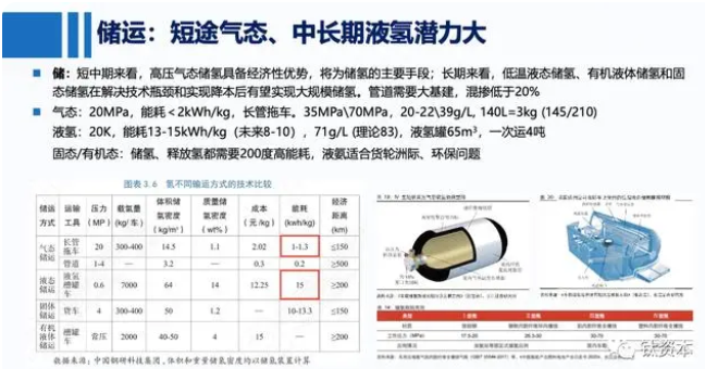三是固态储氢和有机态储氢。最早的固态储氢材料需要加热到200多摄氏度,现在可能通过掺入一些稀土金属可以降低到100摄氏度以下,但仍然需要耗能。