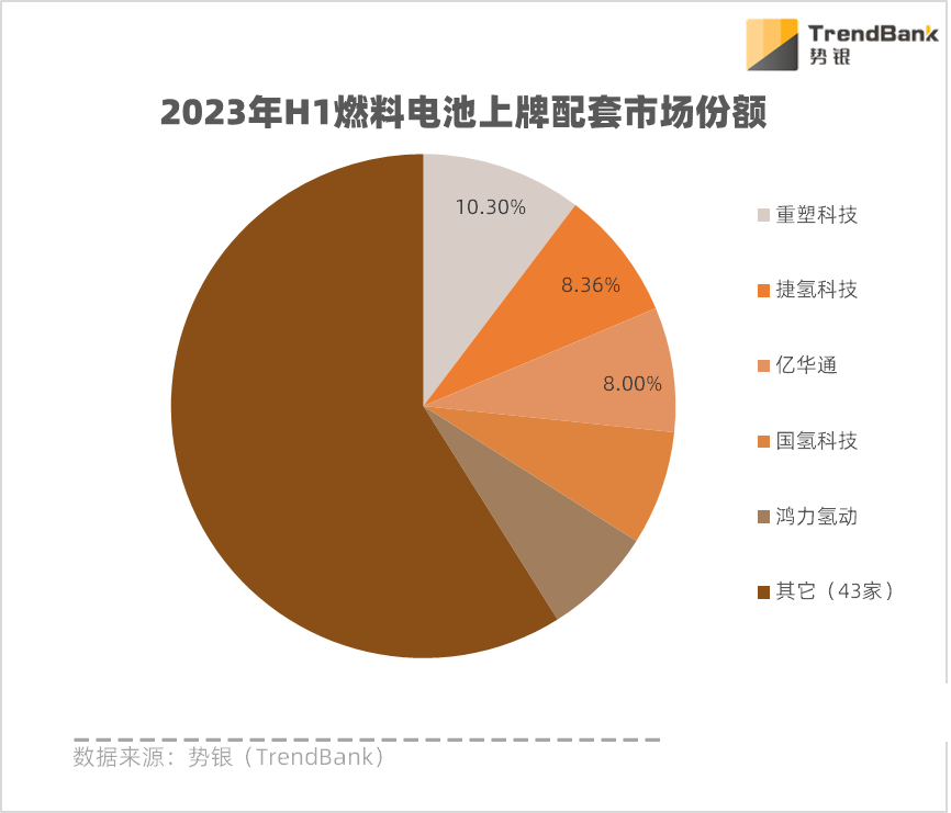 其次,从上半年燃料电池系统配套上牌来看,TOP5集中度首次跌至40%左右,配套企业的数量创下50家新高。数据分析显示,燃料电池汽车产业已达到快速增长期的初期阶段,但行业实际情况表明目前只是存量市场的内卷罢了,还远未达到增量市场的快速增长期。也就是说,现在是真正来到了燃料电池行业拼技术、资金、综合实力的淘汰期,各家企业在现有存量之中作斗争对于燃料电池汽车的长远发展没有太大的意义,更应该将发力点从存量之争中转变为自身实力的提升。