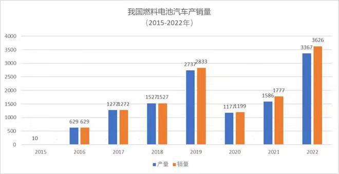 2022年国内氢燃料电池车累计销量3367辆,同比增长112.8%。