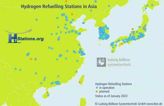 根据一些权威机构的统计,截止2022年年底,日本共有165座投入运行的加氢站,韩国149座,中国也有138座,与日韩两国并没有档次上的差距。