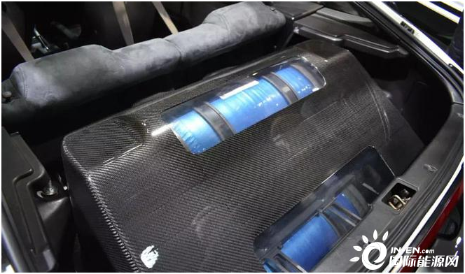 动力方面采用了氢动力,采用1.6L发动机,后备箱配置有两个高压氢罐。