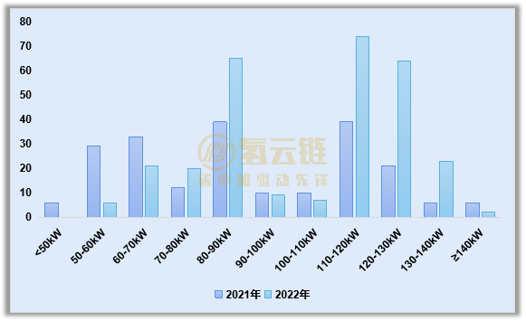 图表3 2021-2022年推荐目录配套燃料电池系统功率分布情况