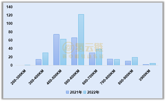 图表4 2021-2022年推荐目录上榜车型续航里程分布情况