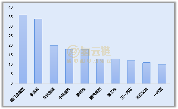 备注:厦门金龙系包括金龙联合汽车工业(苏州)有限公司、厦门金龙联合汽车工业有限公司、厦门金龙旅行车有限公司;宇通系具体包括郑州宇通集团有限公司、宇通客车股份有限公司、郑州宇通重工有限公司、郑州宇通客车股份有限公司;东风集团包括东风柳州汽车有限公司、东风汽车集团有限公司、东风特种汽车有限公司;美锦系包括青岛美锦新能源汽车制造有限公司、佛山市飞驰汽车科技有限公司;徐工系包括徐州徐工环境技术有限公司、徐工湖北环保科技股份有限公司、徐州徐工汽车制造有限公司;一汽系包括一汽解放青岛汽车有限公司、中国第一汽车集团有限公司。
