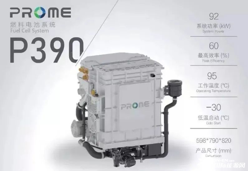 值得一提的是,车辆搭载的PROME P390氢燃料电池系统,是嘉定区安亭镇企业捷氢科技自主研发的车用质子交换膜燃料电池系统,具有一体化集成、高功率密度、高耐久性、高可靠性等优点,电堆功率达到了115kW,系统功率为92kW,多项性能指标已能比肩以丰田为代表的国际先进水平。