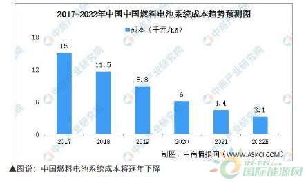 不过,随着行业内部在研发层面加大投入,技术逐步完善,燃料电池系统的成本正逐步下降。高工产研氢电研究所对2022年燃料电池成本做出了预测:▲图说:中国燃料电池系统成本将逐年下降