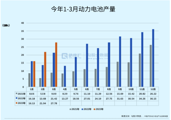 今年1-3月,累计产量130.0GWh,累计同比增长26.3%;累计销量达108.5GWh,累计同比增长66.8%。