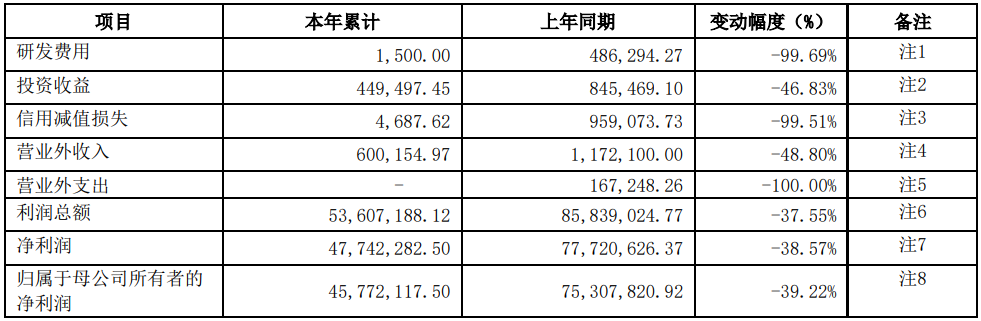 研发费用同比减少99.69%,主要系本期研发项目费用化支出减少所致;