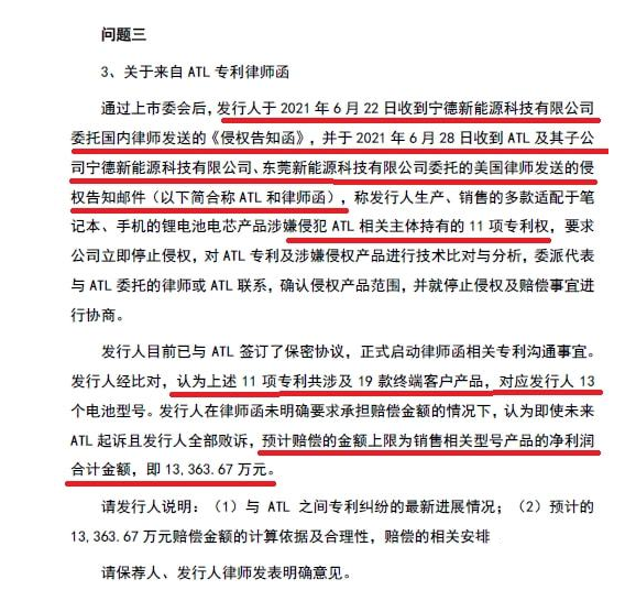 2021年9月6日,珠海冠宇公布《发行人及保荐机构关于发行注册环节反馈意见落实函的回复》的“问题三、关于来自ATL专利律师函的回复”中,对与ATL专利纠纷的基本情况和前期进展进行了披露。