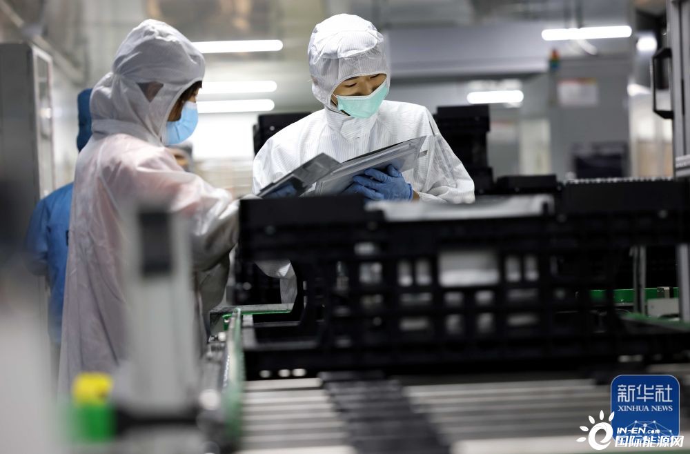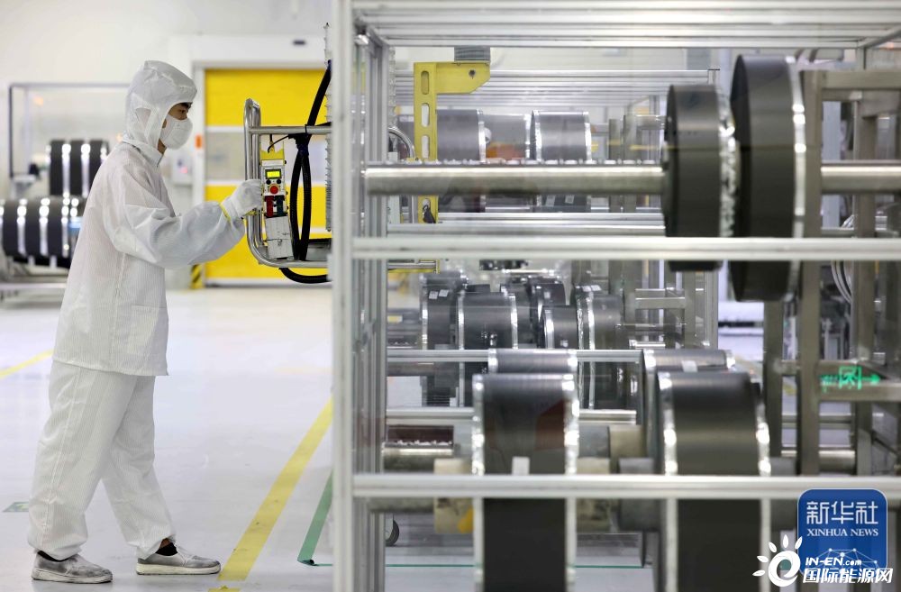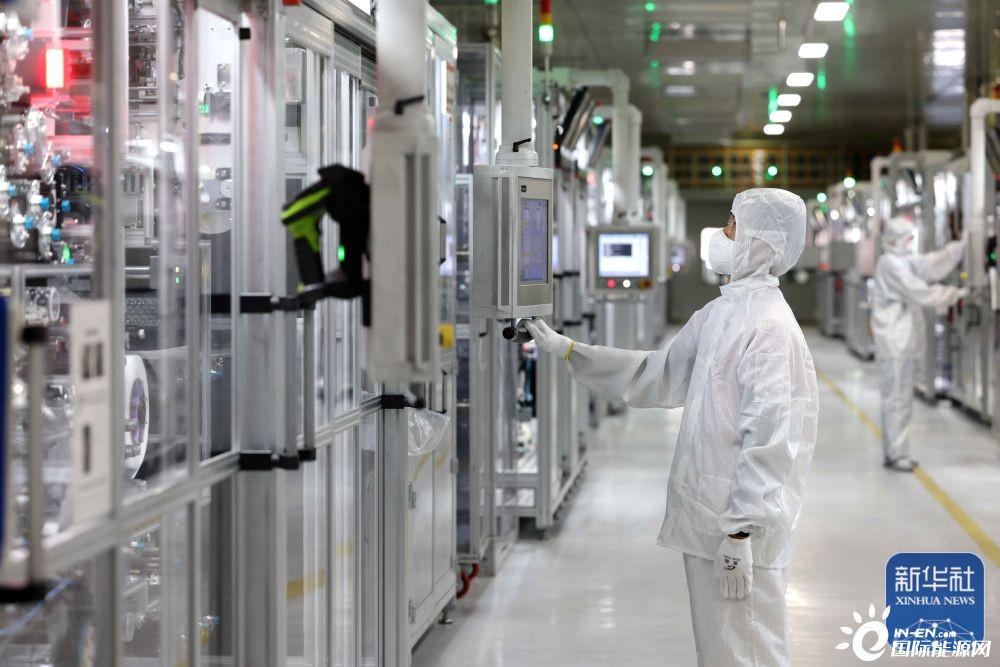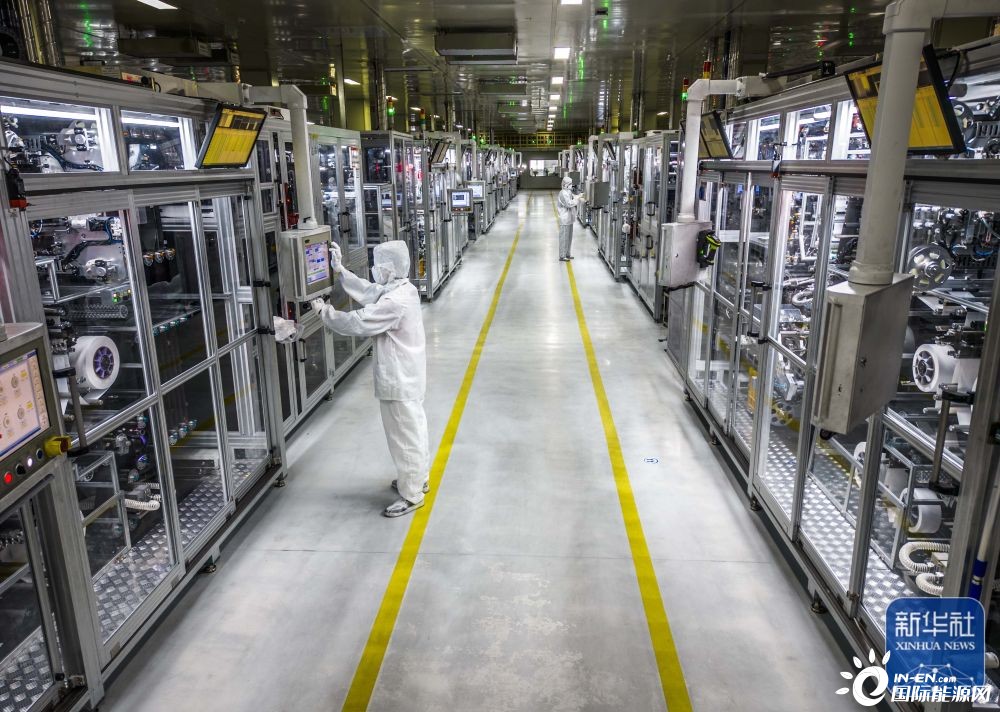 7月17日,在合肥一家动力电池生产企业的生产车间,技术人员在锂电池生产线上作业。