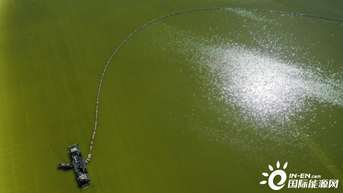 采盐船在青海盐湖工业股份有限公司钾肥分公司的盐湖工作(无人机照片)。新华社记者 张龙 摄