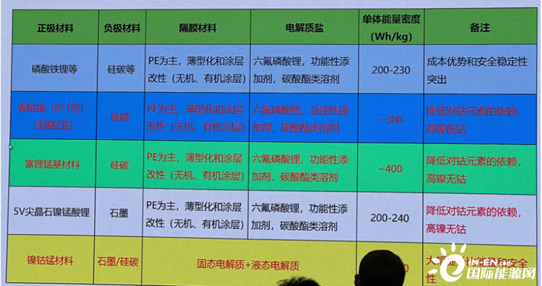 第三代电池如果走向镍酸锂,三元的能量密度大概能提升40%,结合负极材料,从今天的不到700提升到1000Wh/L。