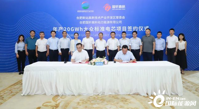 7 月 20 日上午,国轩高科旗下全资子公司合肥国轩高科动力能源有限公司(简称合肥国轩)与合肥新站高新技术产业开发区管委会正式签署合作协议,拟在新站高新区建设 20GWh动力电池生产基地,该基地将专注大众汽车标准电芯的生产制造,这也就意味着大众汽车全球首款标准电芯有望“合肥造”。