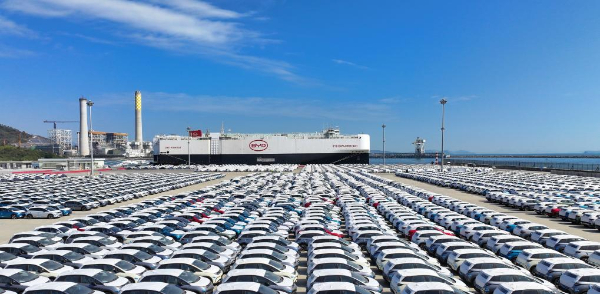 2月26日,一艘名为“比亚迪开拓者一号”的滚装船抵达德国不来梅哈芬港,卸下3000多辆新能源汽车。这条从深圳启航的滚装运输船,是比亚迪“出海船队”的第一艘船,另外七艘运输船正在建造中。