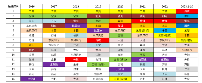 广汽传祺则依靠M8和M6两款车,品牌排名一路上升,2023年1-10月累计销量排名第一,总销量为13.4万辆。