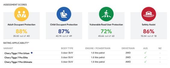 此次与奇瑞瑞虎7 Pro同批次接受ANCAP官方检测的其他品牌车型中,就不止出现一例“零星评级”。