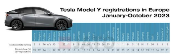 据了解,尽管特斯拉Model Y没有在10月份的欧洲月度注册量排行榜上名列前茅,但它仍然是2023年迄今为止最受欢迎的新能源车。2023年1月至10月,Model Y的注册量超过209000辆,比2022年同期的85823辆有所增加,有望在今年年底成为欧洲注册量最高的车型。这将是非欧洲品牌车型首次在年度排名中名列前茅!