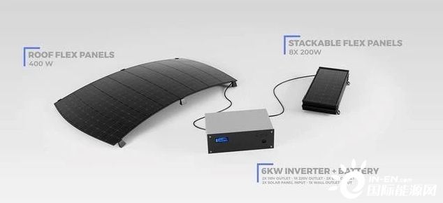 据悉,EV Solar Kits特斯拉光伏升级包包含一个400瓦的太阳能车顶和八个可折叠的太阳能面板组成,每个面板可产生200瓦的电能、一个逆变器和一个6 kW小型电池、一个220伏插座、两个110伏插座和两个USB插槽。