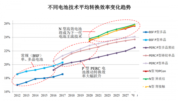 目前,PECR电池已基本取代常规电池(BSF)成为市场主流,虽然效率仍有一定提升空间,但量产转换效率已接近24%左右极限,进一步挖潜的空间不大。