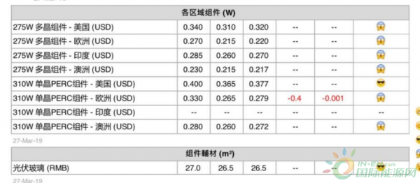 由于增值税的调降、加上市场已出现整体需求减弱氛围,本周电池片价格出现了下调。单晶PERC电池片部分,虽近期订单能见度仍高、但市场需求总量出现放缓,价格下跌至每瓦1.2-1.22元人民币。而随着硅片价格尚未完全谈定,目前市场仍有不少电池片订单仍在买卖双方僵持的局面,预期后续仍会出现微幅下跌。海外价格则因为国内增值税的调降,跌幅较不明显,成交价大多落在每瓦0.16元美金上下。