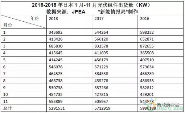 根据日本JPEA发布的数据,经新能情报局统计,2018年前11月