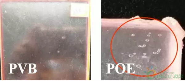 三种双玻HAST测试结果:PVB水汽渗入0mm、POE渗入10mm、EVA渗入30mm