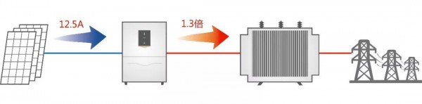 众所周知,双面组件直流侧输出电流高于常规组件,根据双面组件厂家提供的I类资源光照区格尔木的仿真和测试结果,背面增益30%的情况下,输出电流峰值为11.75A,这就要求逆变器直流侧输入电流提高,综合现有部分组件厂家实际测试数据,SG80BF直流侧每串输入电流提升至12.5A,以满足双面组件电流增加的需求。