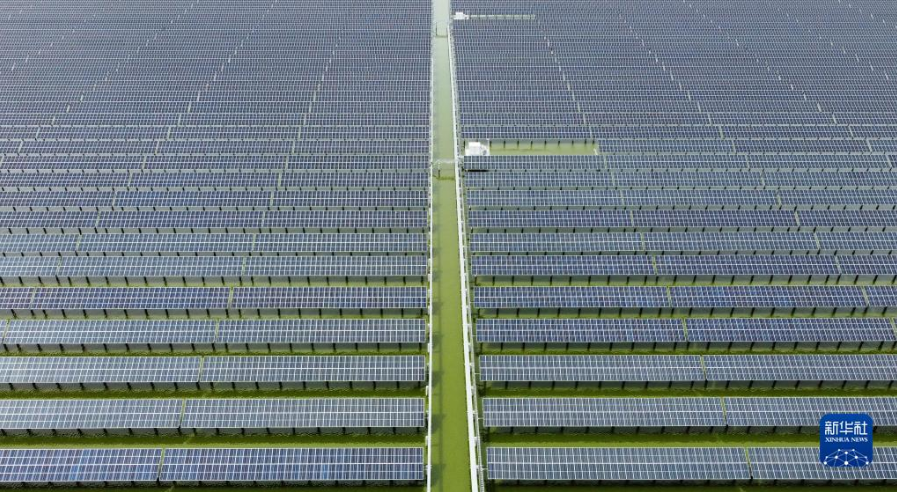 这是7月1日拍摄的龙源天津海晶盐光互补项目一景(无人机照片)。
