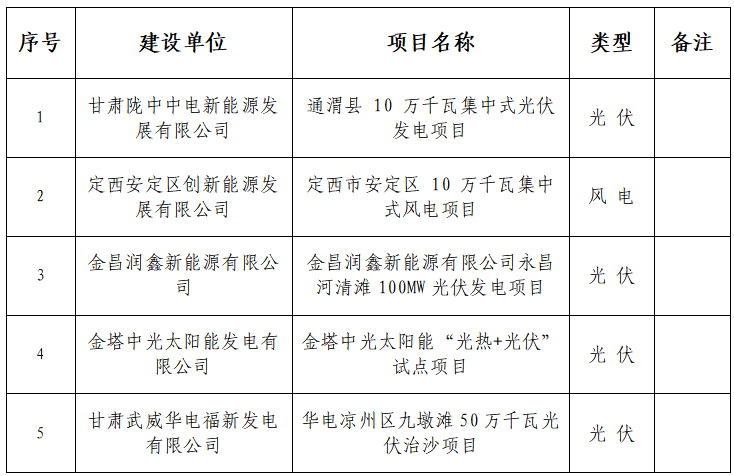 2月16日,甘肃能源监管办公示电力建设工程施工备案,其中光伏项目4个,风电项目1个。