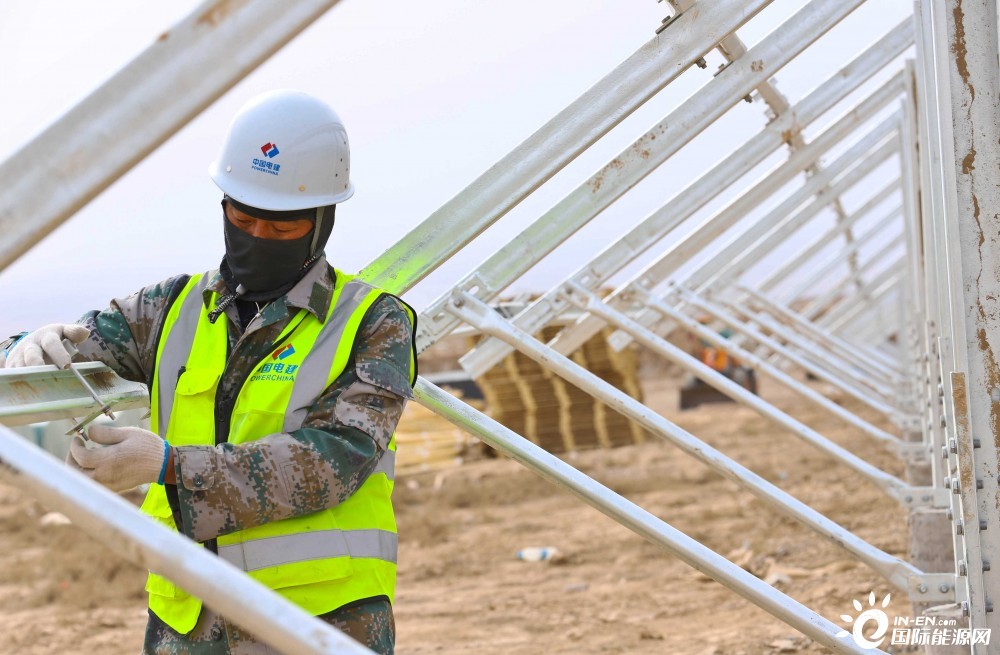 3月24日,连日来,甘肃张掖山丹县49.5兆瓦并网光伏发电项目建设现场,工人们正在紧张有序的安装光伏支架、架设太阳能光伏、输电线路连接、汇集站设备安装,一派忙碌的景象。