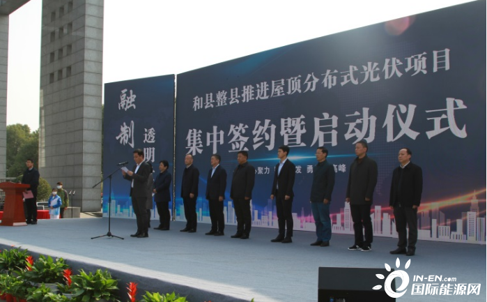 仪式上,陈永红宣布和县整县推进屋顶分布式光伏开发试点项目正式启动。参加仪式的领导嘉宾共同推动启动杆启动项目。李斌伟、汪强分别致辞。张扬主持仪式。