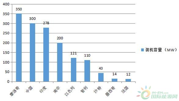 2015年,全球太阳能热发电新增装机容量主要来自于摩洛哥、南非和美国,来自新兴市场的装机增长首次超过西班牙和美国两大传统市场。