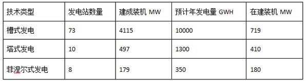 各种太阳能热发电技术装机容量和发电量统计(粗略统计,截至2016年2月)