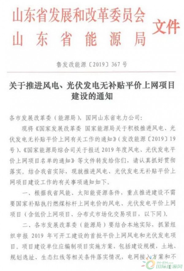 据国际能源网消息 4月18日,山东省发展和改革委员会和山东省能源局联合印发《关于推进风电、光伏发电无补贴平价上网项目建设的通知》(以下简称“通知”),通知指出,