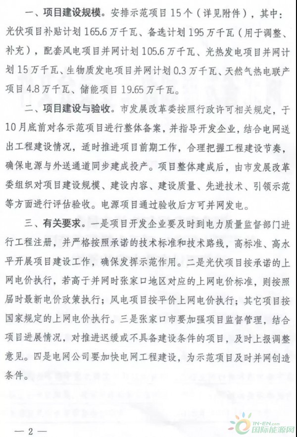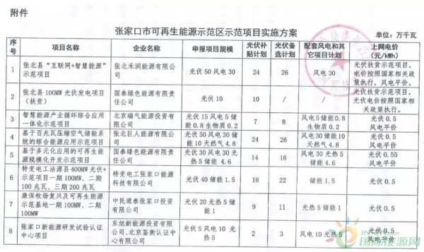 今天(10月12日),河北省发改委下达张家口可再生能源示范区示范项目实施方案的通知,明确张家口可再生能源示范区安排示范项目15个,其中光伏项目补贴计划165.6万千瓦(1.656GW)、备选计划195万千瓦(1.95GW),配套风电项目并网计划105.6万千瓦(1.056GW)、光热发电项目并网计划15万千瓦、生物质发电项目并网计划0.3万千瓦、天然气热电联产项目4.8万千瓦、储能项目19.65万千瓦。