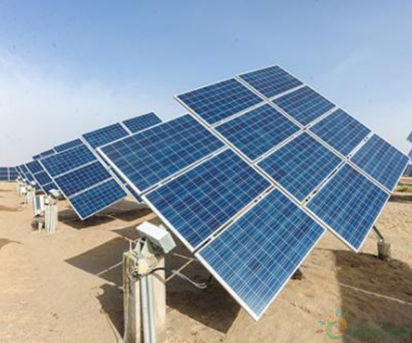 图说:戈壁上的光伏发电板一望无际。