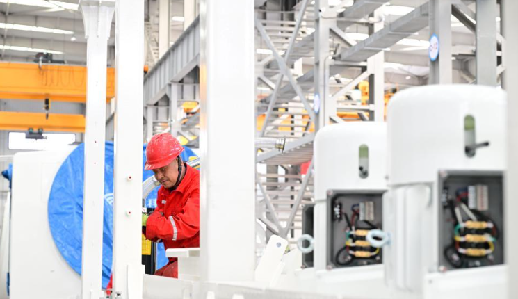 4月10日,工人在隆化县金风电控设备有限公司风电车间装配机舱。 近年来,河北省承德市隆化县在优化产业结构过程中,立足区位优势,大力发展风电装备制造产业。该县通过引进风电装备制造龙头企业和配套企业,加大科技创新力度,不断延伸上下游产业链,打造风电装备制造产业集群,为当地经济转型发展提供有力支撑。