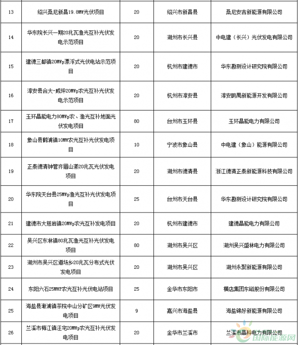 国际能源网讯:根据《国家发展改革委 国家能源局关于完善光伏发电规模管理和实行竞争方式配置项目的指导意见》(发改能源〔2016〕1163号)、《关于开展2016年度全省普通地面光伏电站建设规模竞争性分配的通知》(浙发改能源〔2016〕513号)有关要求,2016年9月27日—28日,省能源局在杭州组织召开了全省2016年普通地面光伏电站建设规模竞争性分配专家评审会。根据专家评审意见,并经省能源局局长办公会议审议,现将全省2016年度普通地面光伏电站建设规模内项目名单予以公示。