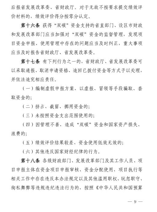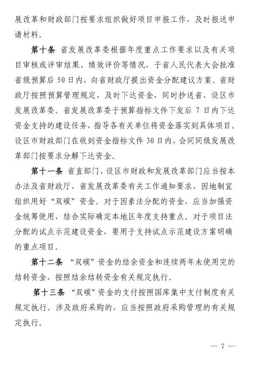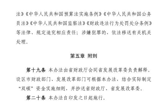 “双碳”资金实施期限至2025年,期满前,由省财政厅会同省发展改革委按照相关规定评估确定是否继续实施和延续期限。