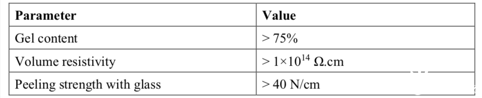 对于晶体硅组件:用于光伏组件的密封剂应为聚烯烃基、抗紫外线和抗PID。长期暴露时,密封剂不得变黄。密封剂应具有以下特性: