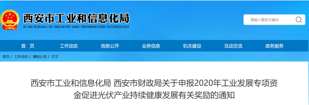 西安市财政局关于申报2020年工业发展专项资金促进光伏产业持续健康发展有关奖励的通知”