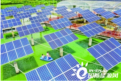 近年来,广西壮族自治区蒙山县因地制宜开展“光伏+渔业”的光伏发电项目,将原先一些洼涝地、荒地打造为“渔光互补”光伏电站,改变传统的渔业养殖生产方式,实施农光互补,既符合国家清洁低碳能源发展战略,又为该县乡村振兴增添新力量。图为8月17日,工人在“渔光互补”村级光伏电站喂养鱼虾。