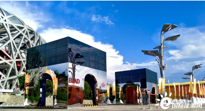 本次国家电投集团能源科技工程有限公司大门采用瑞科蓝色BIPV产品,代替传统大理石材,将光伏发电与建筑相结合,塑造新颖、美观外型的同时兼顾能源供给,是一种集发电、安全、装饰功能于一体的新型建筑幕墙。宣传栏背面采用光储一体化,为宣传栏、路灯提供源源不断的清洁能源。项目同时应用光伏+装饰幕墙、光伏+广告灯箱两种模式,引领光伏建筑一体化新方向。