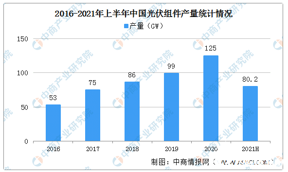 光伏组件是最小有效发电单位。光伏组件主要包括电池片、互联条、汇流条、钢化玻璃、EVA、背板、铝合金、硅胶、接线盒等九大核心组成部分。2020年我国光伏组件产量125GW,2021年上半年光伏组件产量80.2GW,同比增长50.5%。